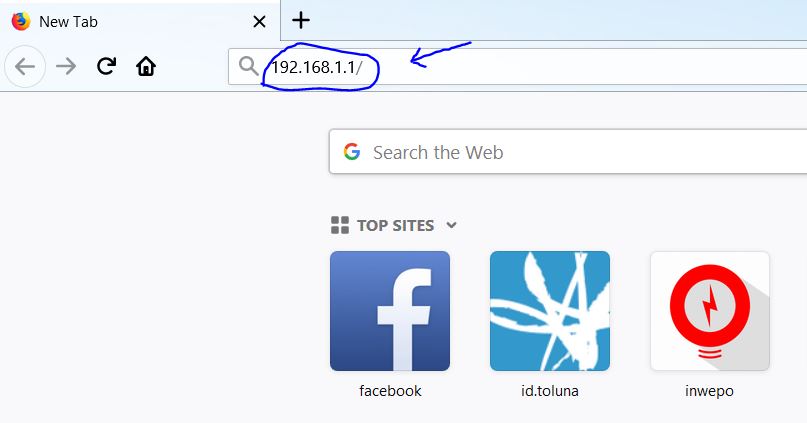 2. Buka browser favorit kamu, misal Google Chrome, Opera atau Mozilla, lalu ketik alamat 192.168.1.1 pada kolom UR.