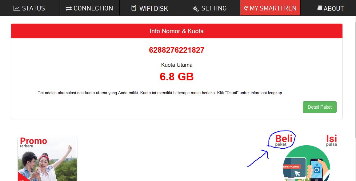 10. Jika berhasil akan terlihat tampilan kouta paketnya dihalaman My Smartfren.