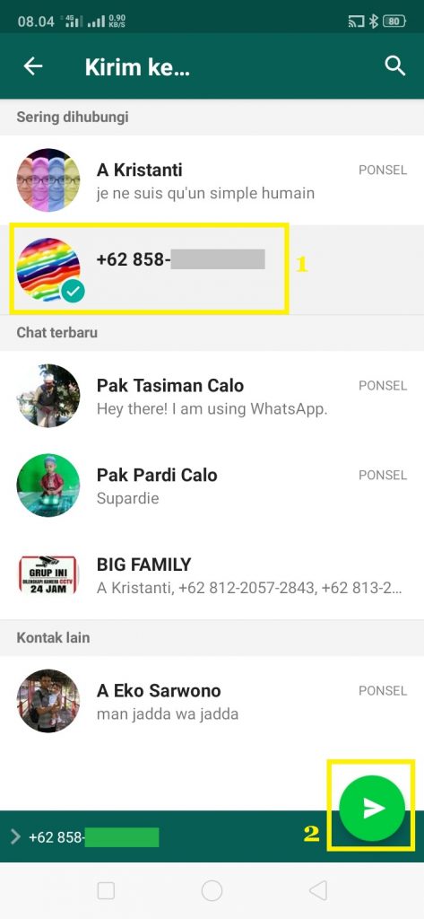 10. Pilih nomer tujuan kamu, dan klik tanda ‘Kirim’.