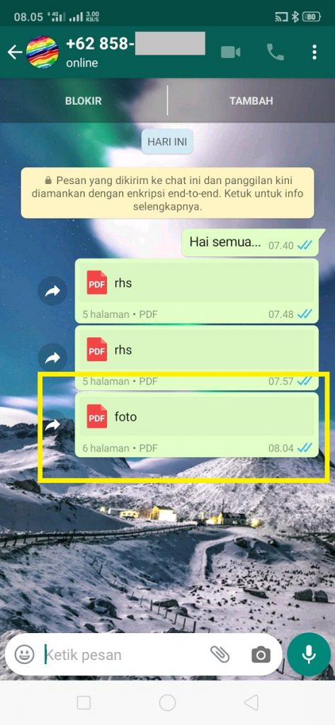 11. Sekarang foto sudah terkirim di nomer WhatsApp yang dituju. Coba klik file kiriman untuk melihat hasilnya.