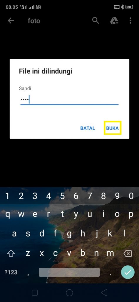12. Muncul kotak dialog permintaan password. Isi password, dan klik buka.