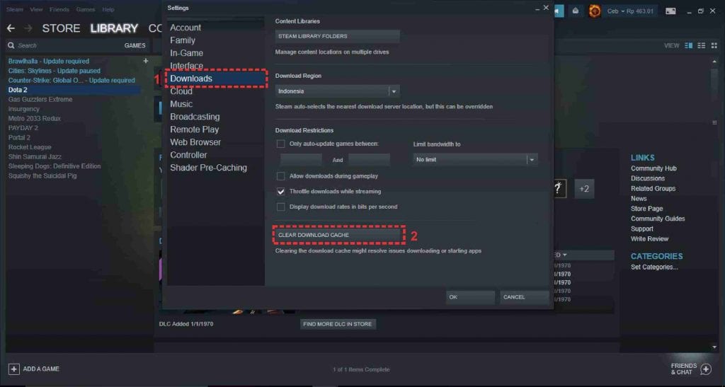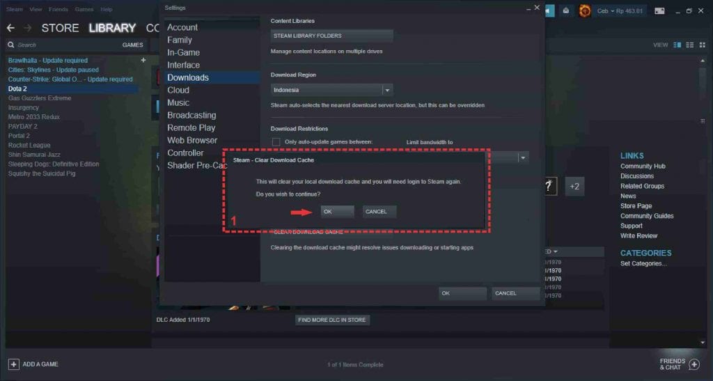 Kali ini penulis akan memberikan tutorial tentang cara membersihkan file-file sampah (cache file) di platform steam. Adapun langkah-langkah nya dapat diikuti berikut ini: