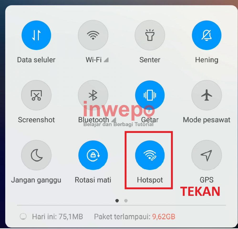 1. Pastikan Hotspot Tethering kamu dalam keadaan menyala, dan kamu tekan selama 3 detik pada icon Tethering sehingga kamu dialihkan ke menu pengaturan.