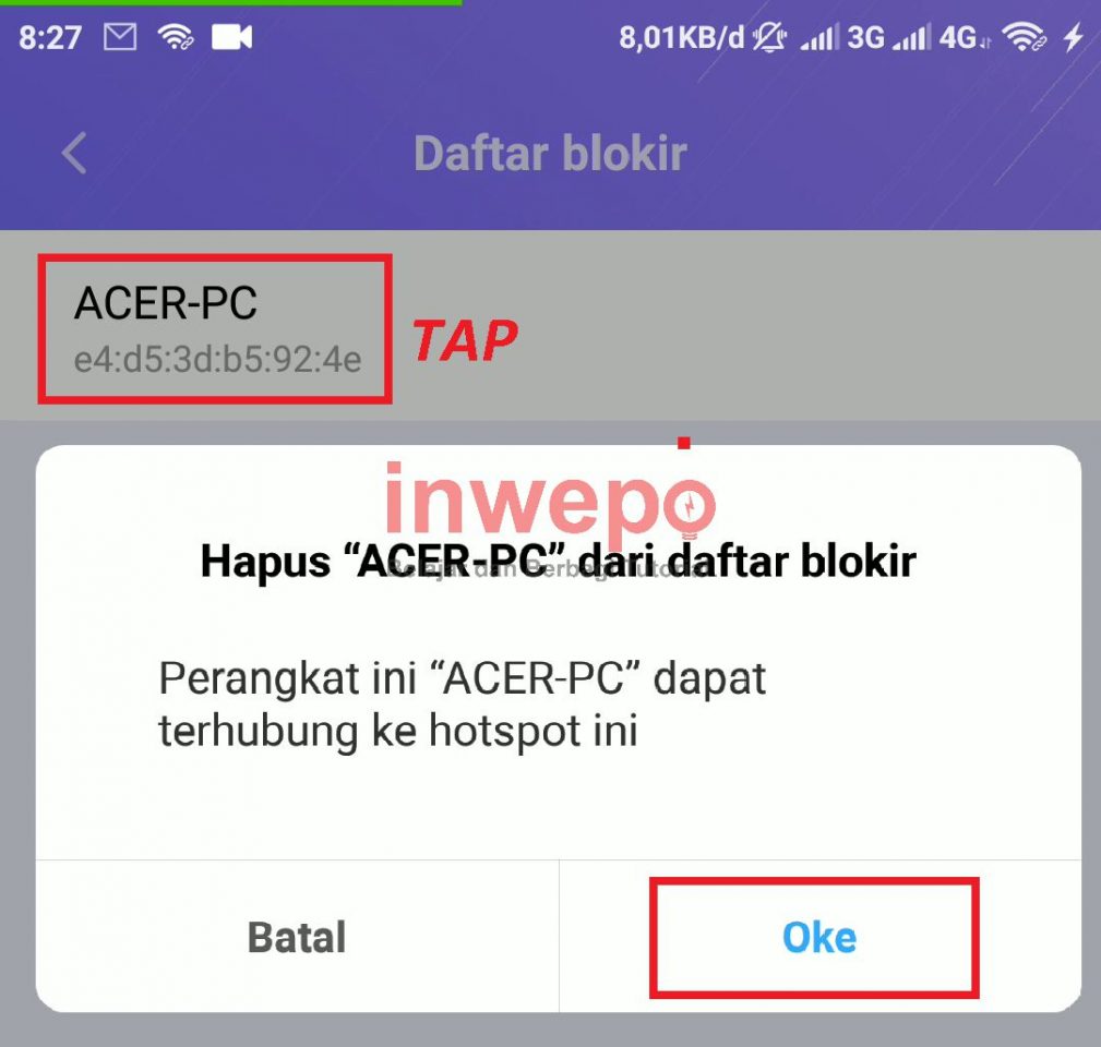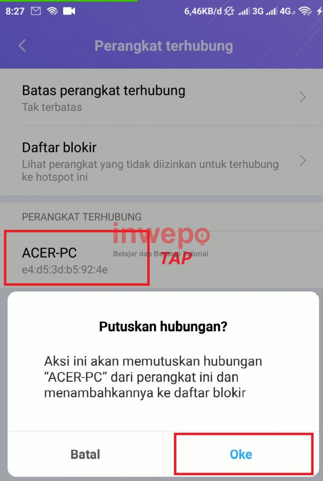 3. Kamu tap pada device yang ingin kamu blokir dan akan muncul peringatan seperti pada gambar di bawah, dan kamu tap OKE jika ingin memblokir device tersebut.