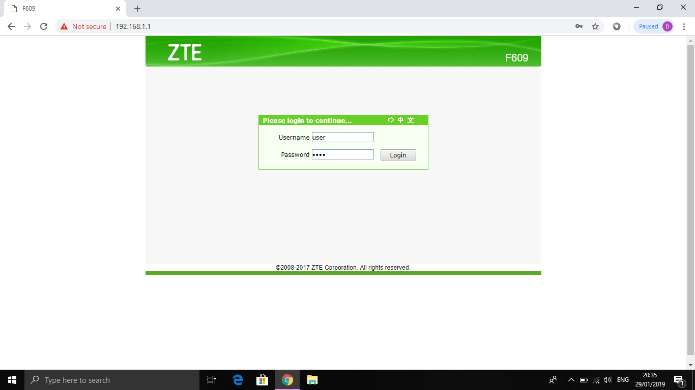 3. Selanjutnya buka browser pada laptop atau PC, ketikkan 192.168.1.1 pada Address Bar. Lalu akan muncul halaman Login seperti ini.