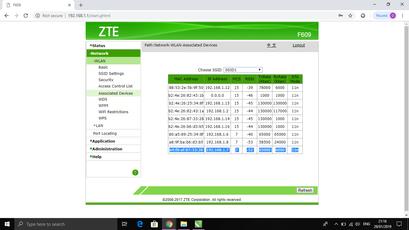 5. Jika berhasil, akan muncul tampilan seperti ini. Pada Sidebar klik Network – WLAN – Associated Devices untuk melihat rincian informasi semua perangkat yang terhubung.