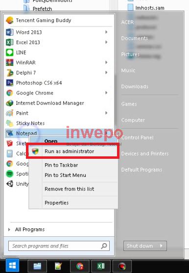 1. Kamu buka aplikasi notepad dengan akses Run as administrator.