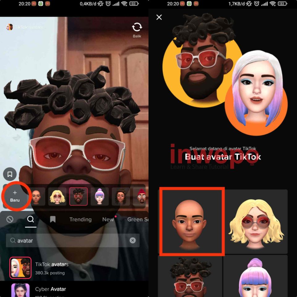 3. Kalian bisa langsung menggunakan beberapa Avatar yang tersedia. Namun jika kurang cocok dan ingin menyesuaikan sendiri tap icon plus. Berikutnya tap salah satu Avatar yang akan di gunakan sebagai dasar.