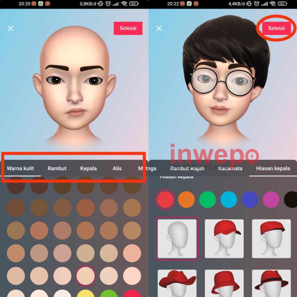 4. Silahkan meng kustom sesuai harapan kalian mulai dari warna kulit, rambut, hingga aksesoris yang di gunakan. Bila sudah kalian bisa tap menu Selesai di bagian atas.