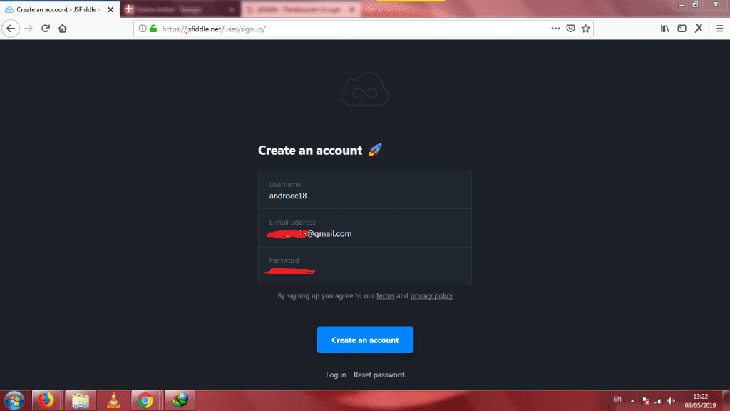 Berikut cara membuat akun baru di JSFiddle.