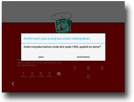 2. Isikan tahun kelahiran kamu. Misal, 1993. Setelah itu klik konfirmasi.
