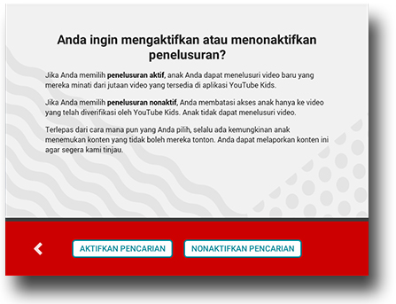 7. Dengan memilih aktifkan pencarian atau nonaktifkan pencarian, akun YouTube Kids sudah berhasil dibuat – ayo mulai.