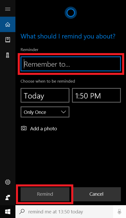 4. Tunggu proses thinking cortana, akan muncul tampilan mengenai informasi alarm tersebut, kamu isi kolom yang tersedia dan reminder.