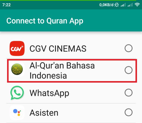 Connect to Quran App : Pilih aplikasi alquran yang ingin kamu gunakan