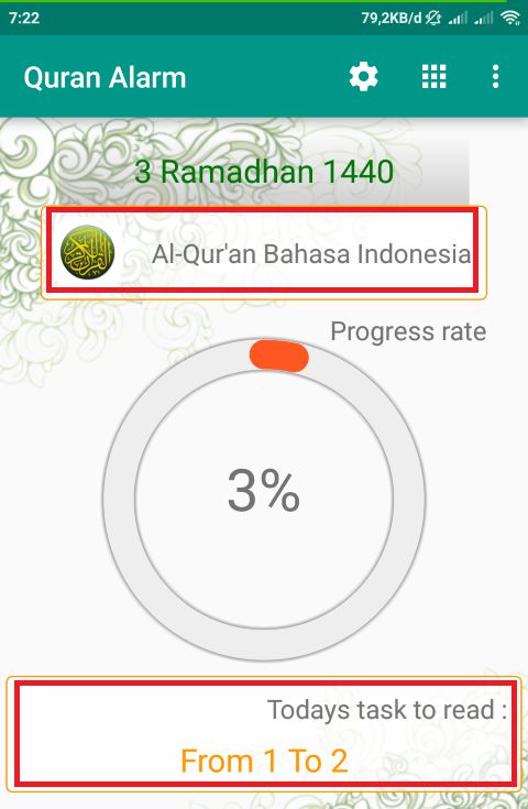 6. Ketika kamu tap notifikasi tersebut, disana terdapat aplikasi Alqurannya, Juz berapa yang harus kamu baca, dan Progress kamu untuk mencapai Juz 30.
