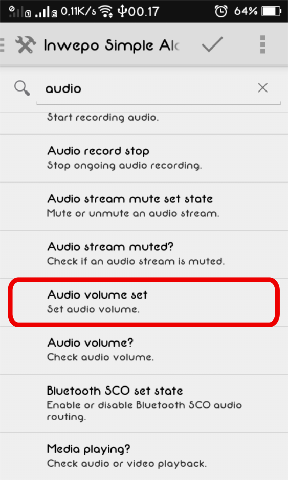 6. Pada kolom pencarian, ketik Audio, lalu pilih opsi Audio volume set.