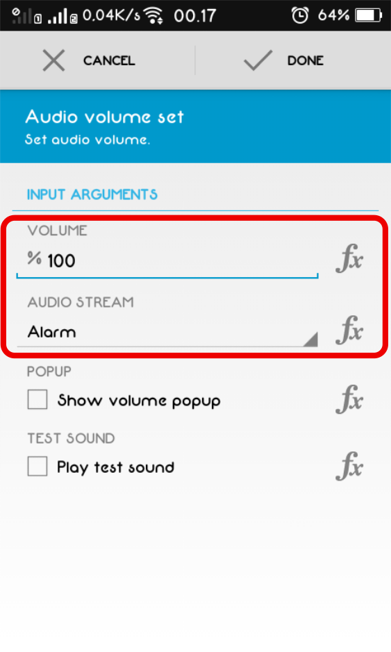 7. Pada bagian Audio volume set, atur volume sesuai dengan kebutuhan, lalu atur Audio Stream menjadi Alarm. Jika sudah, klik Done pada bagian atas aplikasi.