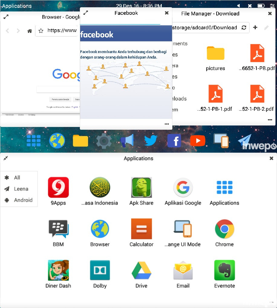 Leena Launcher adalah aplikasi multi windows Android yang bisa kita pasang pada Android tanpa harus melakukan root terlebih dahulu. Pada dasarnya, aplikasi launcherĀ sederhana ini memungkinkan pengguna untuk membuka aplikasi melalui split screen yang bisa terbuka lebih dari satu. Kita pun bisa membukanya melalui apps drawer dengan tampilan yang bisa di kostumisasi. Selain itu bisa kita gunakan melalui dua mode yang berbeda yakni Landscape dan Portait.