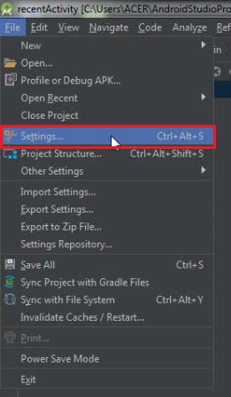 2. Lalu kamu klik pada menu File – Settings.
