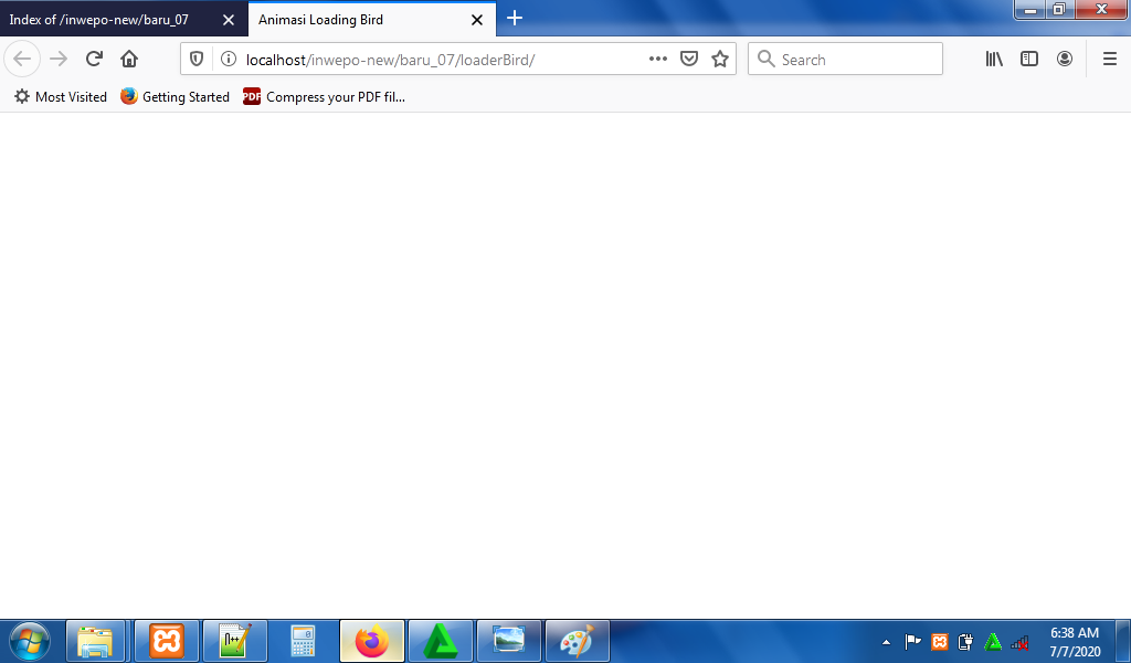 5. Reload alamat url : http://localhost/LoadingBird. Tampilan bird sudah siap, namun animasi loading belum muncul.