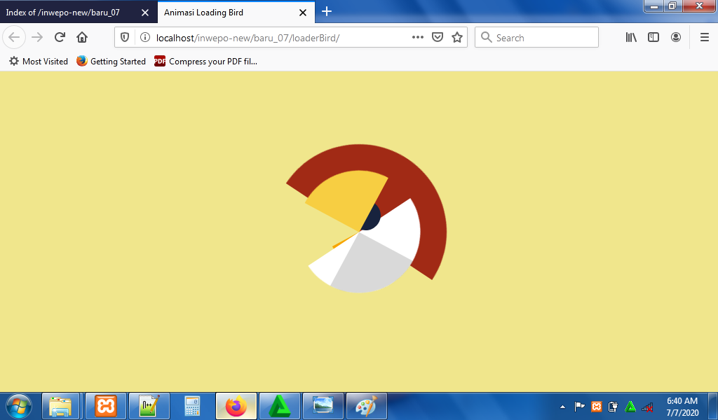 7. Reload alamat url : http://localhost/LoadingBird. Berikut tampilan dari loading bird sudah siap. Secara bergantian kepala bird akan berpindah posisi ke kiri dan ke kanan.