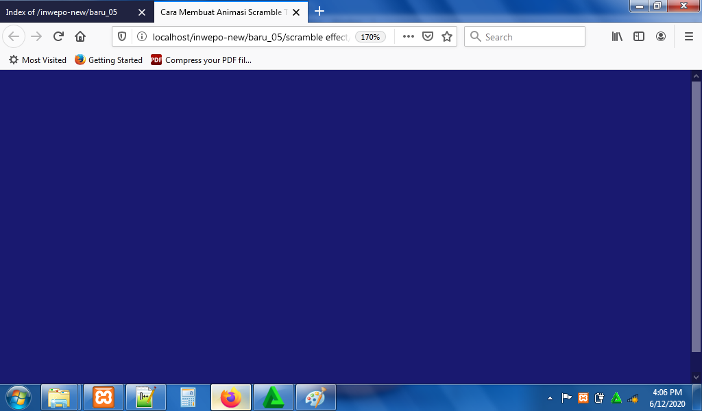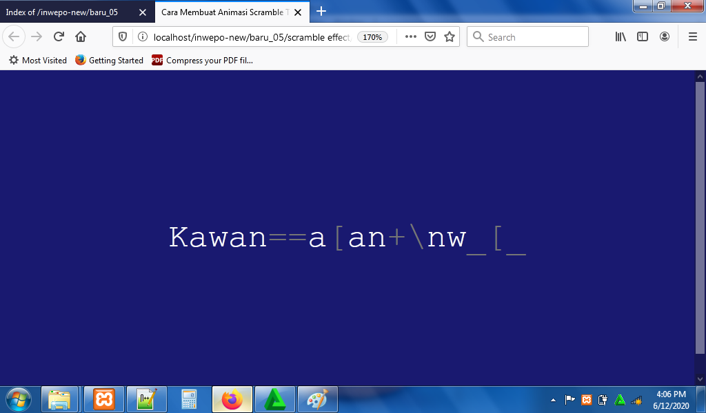 6. Reload alamat url : http://localhost/Scramble. Tampilan background dari animasi teks scramble.