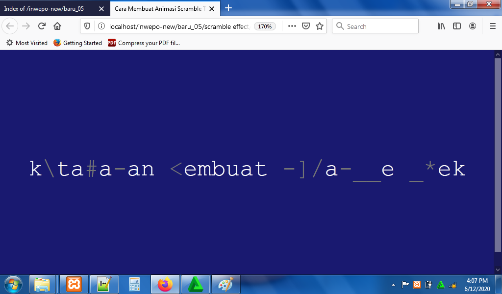8. Reload alamat url : http://localhost/Scramble. Sebelum menampilkan teks asli, animasi scramble akan menampilkan symbol secara acak.