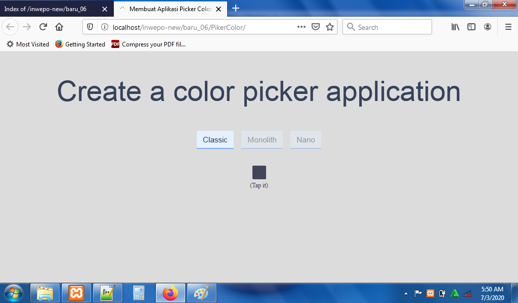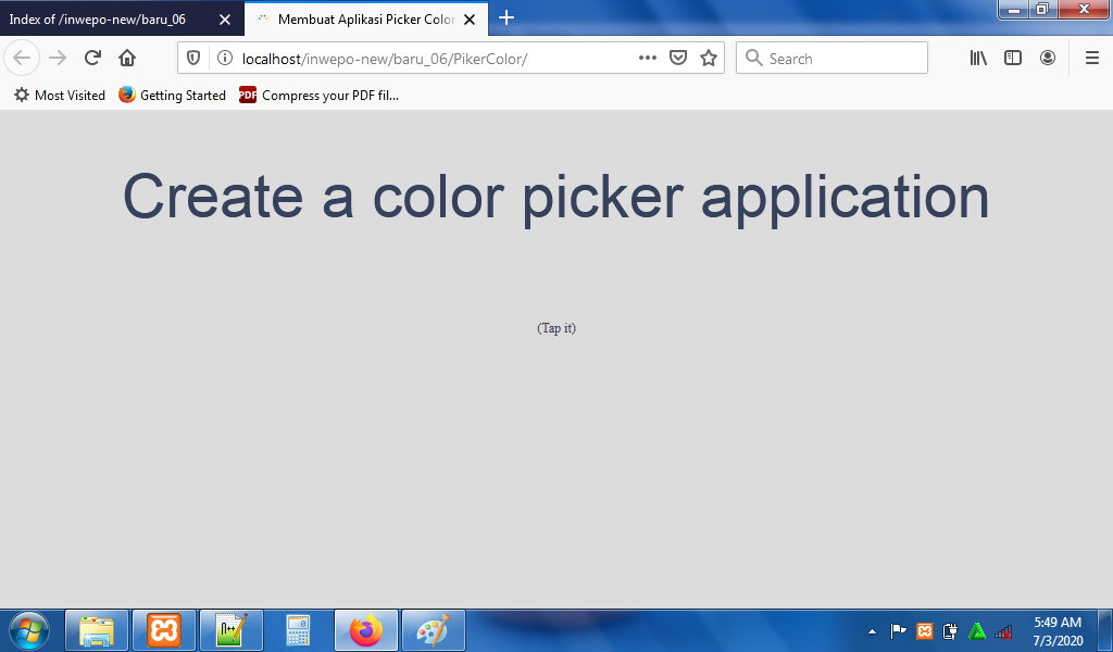 6. Reload alamat website http://localhost/PickerColor. Tampilan background aplikasi picker color.
