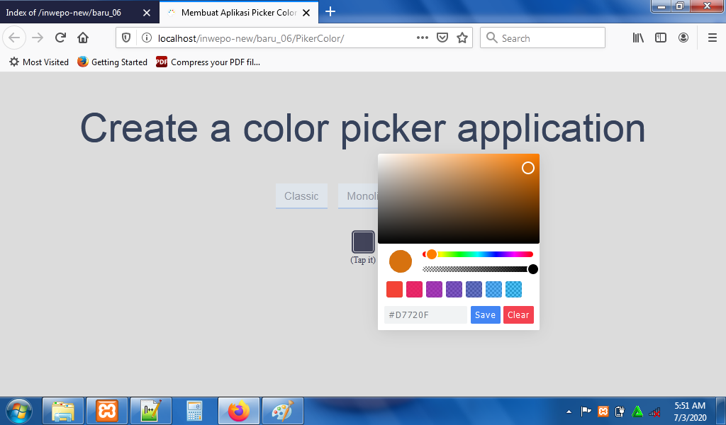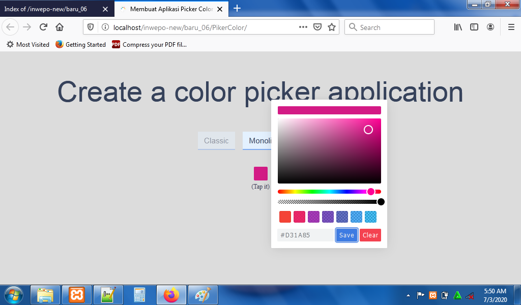 4. Untuk melihat hasil script code diatas, kamu bisa buka browser kamu ketiklah http://localhost/PickerColor.
