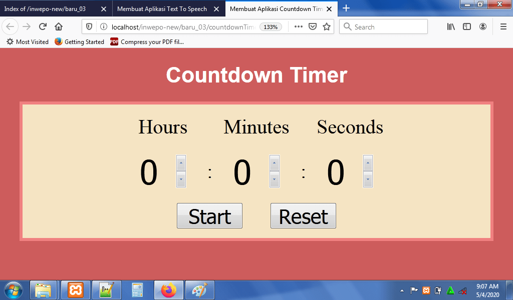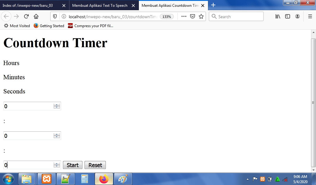 5. Reload alamat url : http://localhost/CountdownTimer. Tampilan awal dari aplikasi countdown timer.