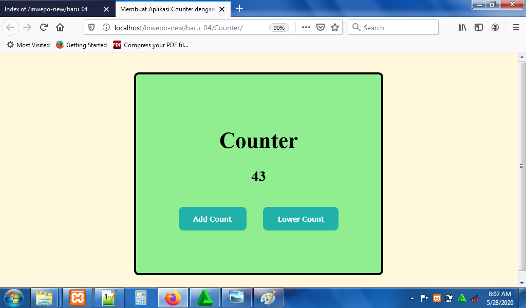 7. Reload alamat url : http://localhost/Counter. Klik tombol add count untuk menambah angka di aplikasi counter.