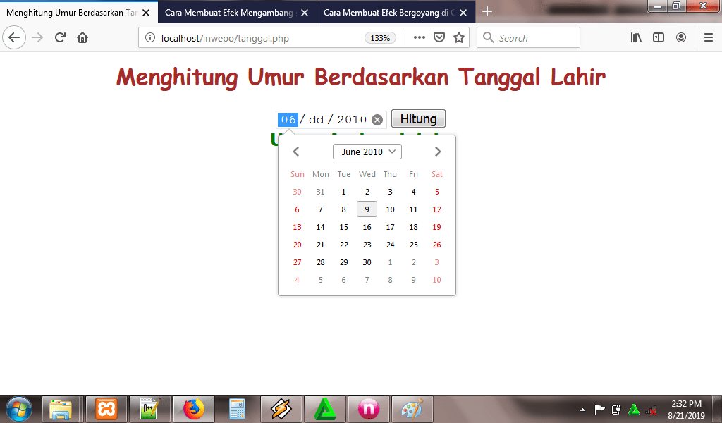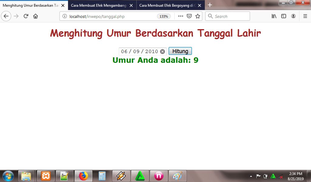 5. Reload kembali http://localhost/inwepo/tanggal.php, dan berikut hasilnya: