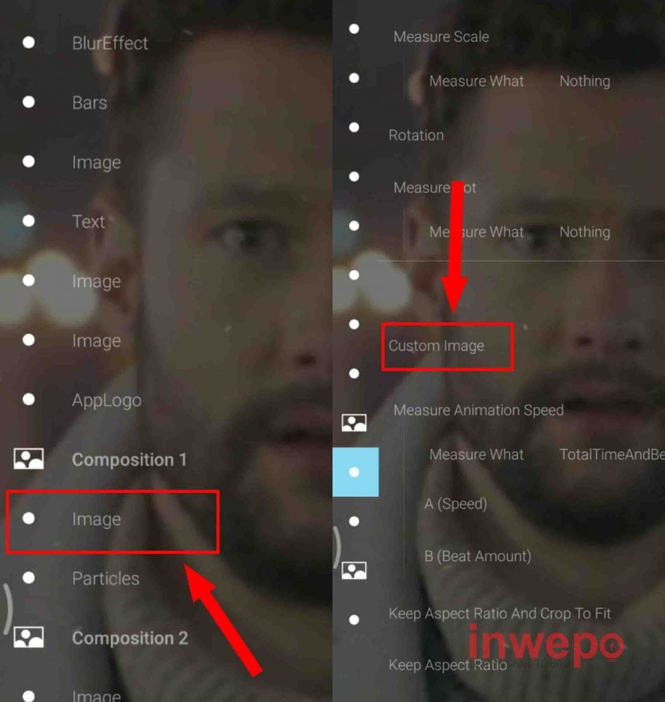5. Tap Image pada menu Composition 1 lalu pilih menu Custom Image.