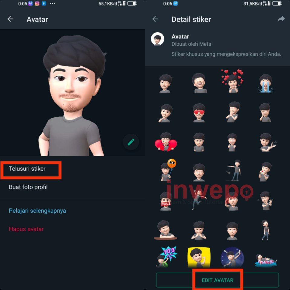 6. Tap menu Telusuri Sticker untuk melihat sticker hasil Avatar yang sudah kalian buat. Jika dirasa masih ada yang kurang cocok kalian bisa mengedit ulang avatar menggunakan menu edit di bagian bawah.
