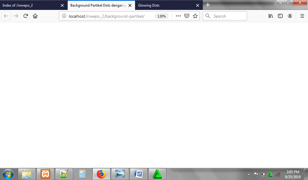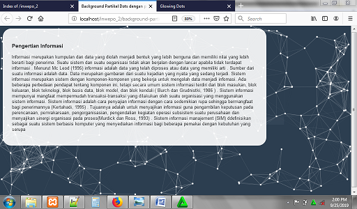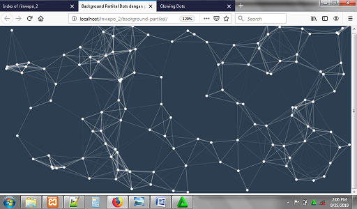3. Untuk melihat hasil script code di atas, kamu bisa buka browser kamu ketiklah http://localhost/background-partikel.