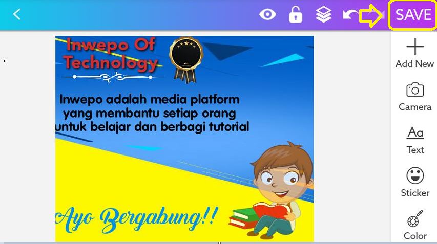 6. Jika semuanya telah selesai dalam melakukan design banner iklannya. Maka kamu jangan lupa menyimpan file dari banner tersebut, karena jika kamu langsung keluar saja dari aplikasinya. Maka banner iklan tersebut tidak tersimpan di dalam galeri.