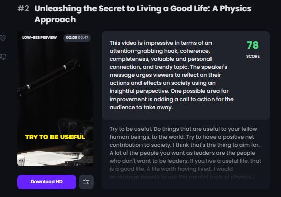 AI bahkan mampu memilih bagian mana yang dipotong menjadi video pendek atau tidak berdasarkan panjang waktu tertentu yang kita inginkan. Jelas saja ini adalah alternatif dari cara membuat klip video cepat. Kamu tidak perlu lagi lelah membuatnya secara manual melalui menu klip YouTube.