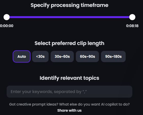 6. Jangan lupa untuk menentukan panjang durasi klip video pendek tersebut. Kamu bahkan bisa melakukan pemotongan video ini melalui keyword atau kata tertentu di prompt.