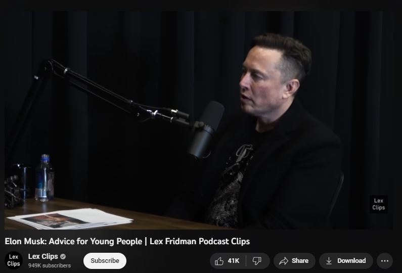 4. Penulis akan menggunakan video podcastnya Elon Musk ini untuk dijadikan potongan-potongan video pendek.