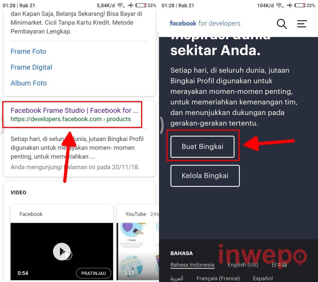 Mungkin sering kali kita lihat di timeline Facebook, banyak sekali pengguna atau bahkan teman kita yang menggunakan frame atau bingkai pada foto profil yang mereka gunakan. Biasanya juga terdapat saran untuk mencoba frame tersebut yang disertai dengan nama si pembuat frame tersebut. Mungkin banyak dari kita yang bertanya-tanya dan penasaran bagaimana cara membuatnya? Untuk itu pada artikel kali ini inwepo akan kasih tahu cara mudah untuk membuat frame Facebook hanya dari smartphone.