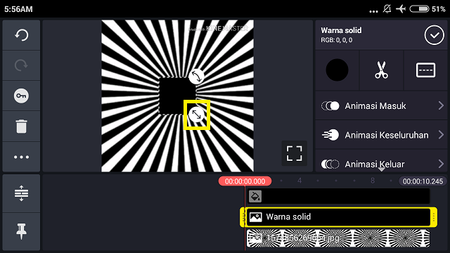 7. Perbesar gambar B&W, dan panjangkan durasi menjadi 10 detik sesuai dengan background.