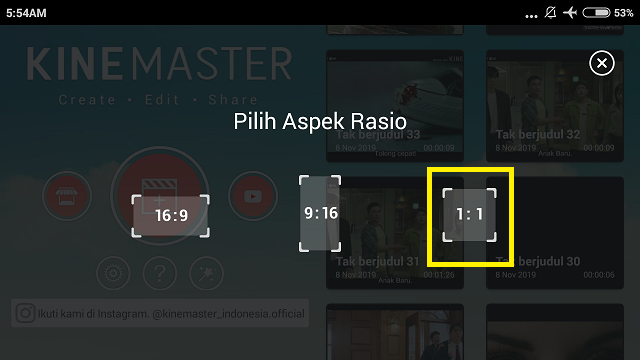 Pilih aspek rasio, disini saya akan menggunakan aspek rasio 1:1.