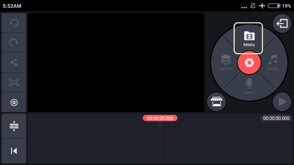 13. Untuk mengatur kecepatan berputar bingkai warna-warni, buka kembali aplikasi KineMaster. Ambil video bingkai warna-warni dengan pilih ‘Media’.
