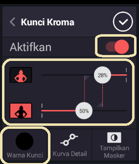 Aktifkan kunci kroma. Agar video konten dapat muncul, atur warna kunci.