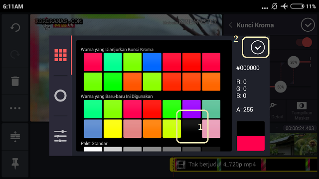 Karena background video bingkai berwarna hitam kita ubah warna kunci menjadi hitam.