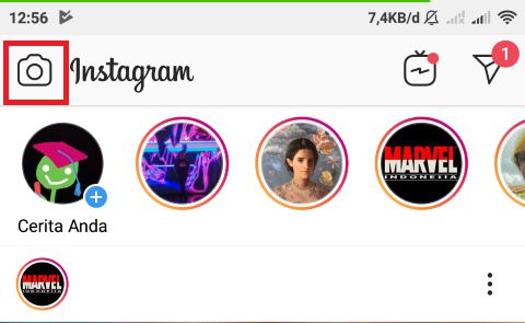 1. Sebelum membuka aplikasi Line, kita buat dulu video boomerangnya menggunakan aplikasi Instagram, kamu buka aplikasi Instagram dan buat stories baru.
