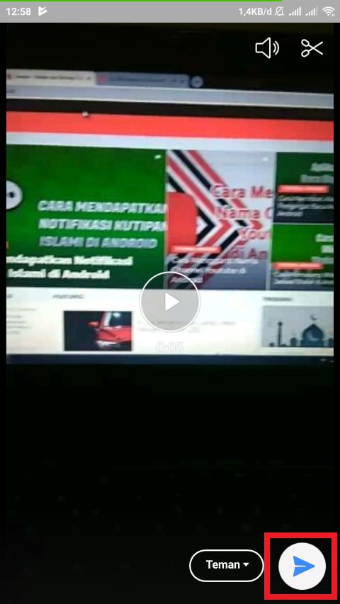 7. Jika video sudah benar, kamu tap pada tombol panah untuk mengunggahnya ke Line Stories.