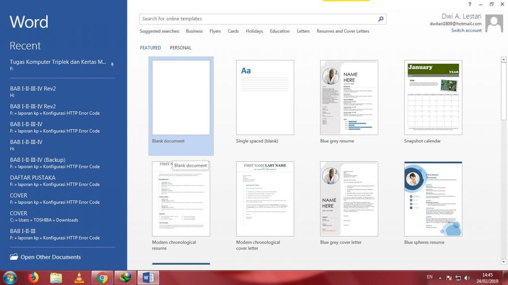 2. Pilihlah Blank document untuk membuat dokumen baru. Tunggu beberapa saat sampai muncul tampilan lembaran kerja.