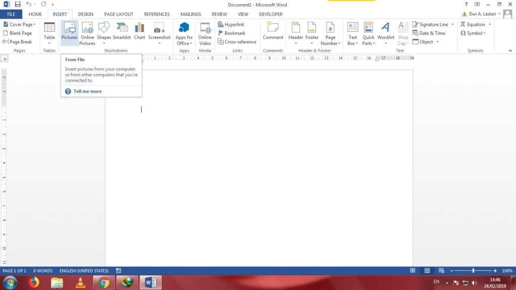 3. Klik Tab INSERT – Klik Pictures untuk memilih gambar (image) yang diinginkan.