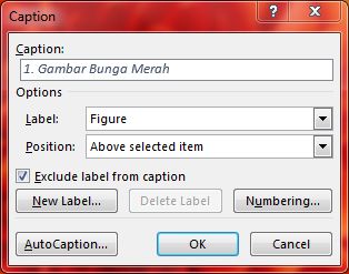 6. Isilah caption sesuai dengan keinginan atau gambar yang kamu masukkan ke dalam lembar kerja tersebut. Pada position, kamu bisa atur posisi caption misal di bawah, jika sudah klik OK.